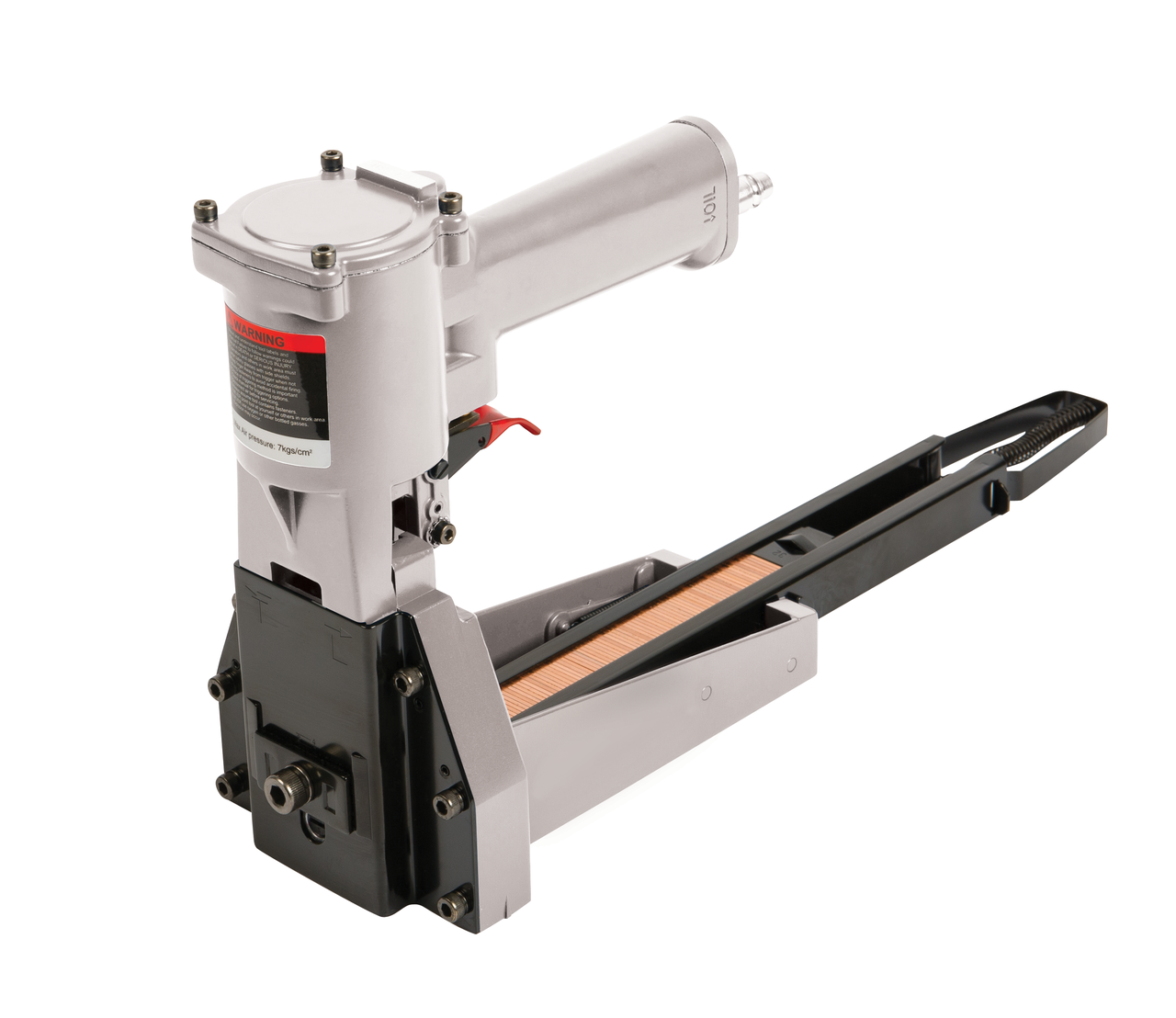 - Pneumatic, high power, heavy duty carton stapler
